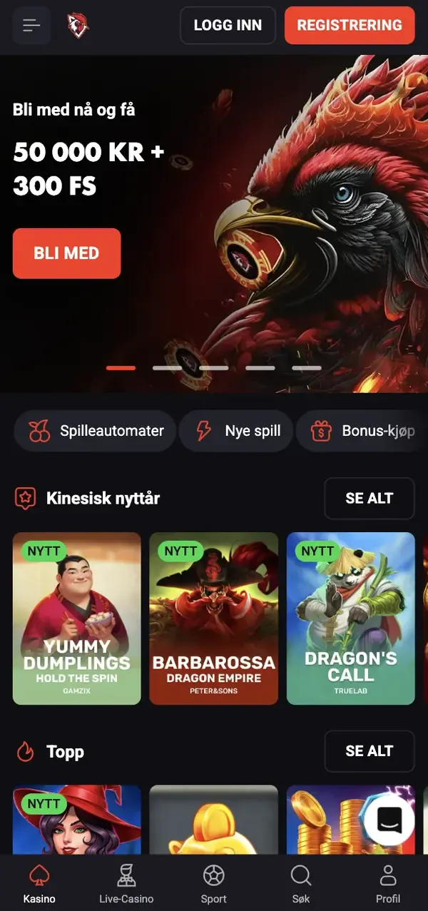PÄ mobil kan du fÄ tilgang til alle hovedkategorier: spilleautomater, bordspill, live casino, jackpotspill, sportsbook, instant win og crash-spill. Hvis du vil ha et tydelig startpunkt, foreslÄr vi Ä utforske live casino med Evolution, eller sjekke nye utgivelser i RoosterBetCasino ved Ä filtrere pÄ Pragmatic Play. For sport kan du plassere spill og fÞlge dem i samme Þkt som casinospill.
